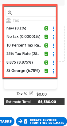 Once a tax percentage is added, select "Save tax." This will select the tax rate for this estimate and make it available for use again in the future.