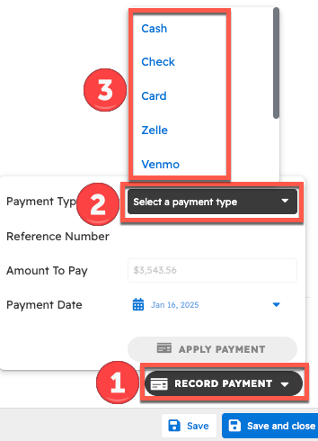 Next, press the "Record Payment" button and enter the information regarding the payment.