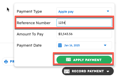 Enter a reference number if needed and the amount that was paid. There is an option to specify the payment date.