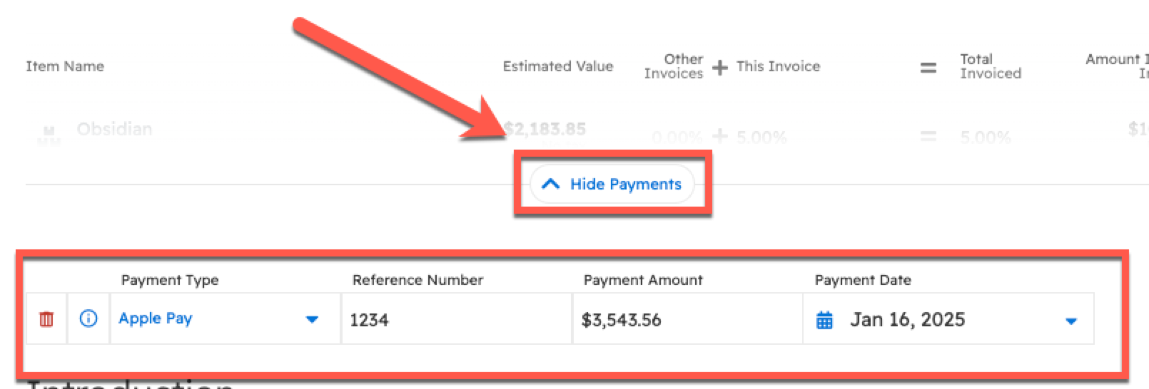 Clicking the "View Payments" button will display a list of all payments that have been applied to the invoice.