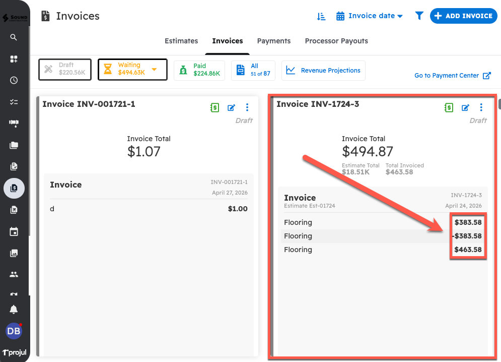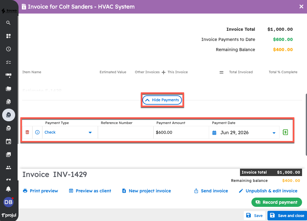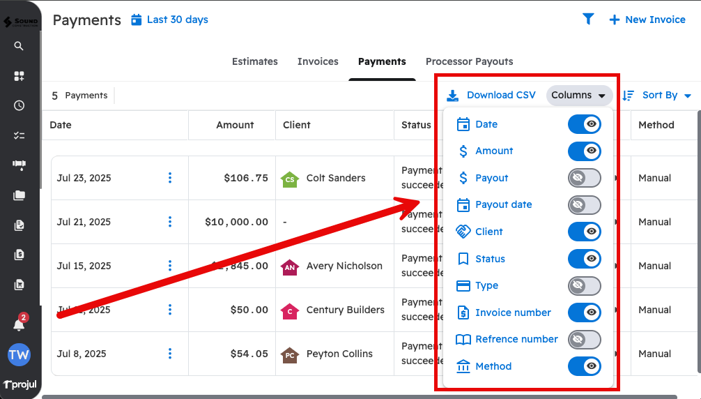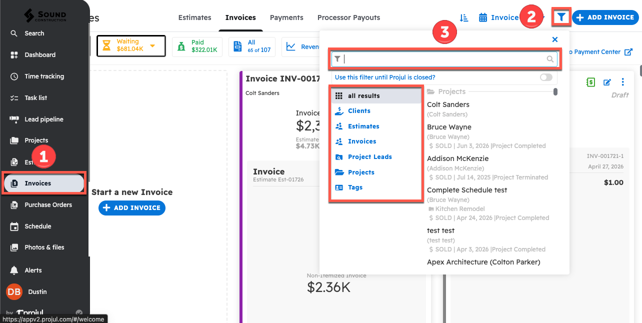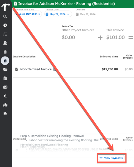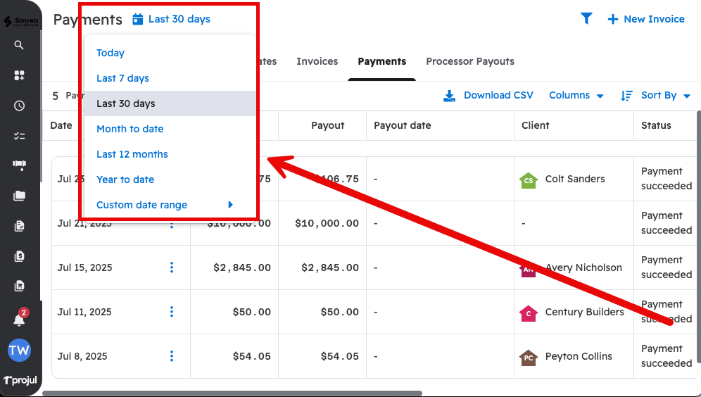 The final place to view payments in Projul is on the invoice itself. To find the payment, first navigate to the invoice in Projul.