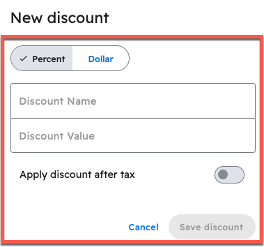 - Clicking on the "Add discount" button will open a pop-up that displays all the discounts currently available.