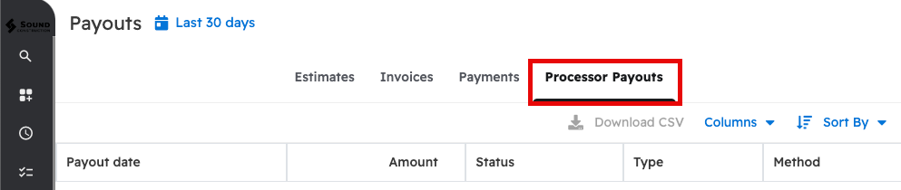 To navigate to the payouts page, select the "Processor Payouts" option at the top of the page.
