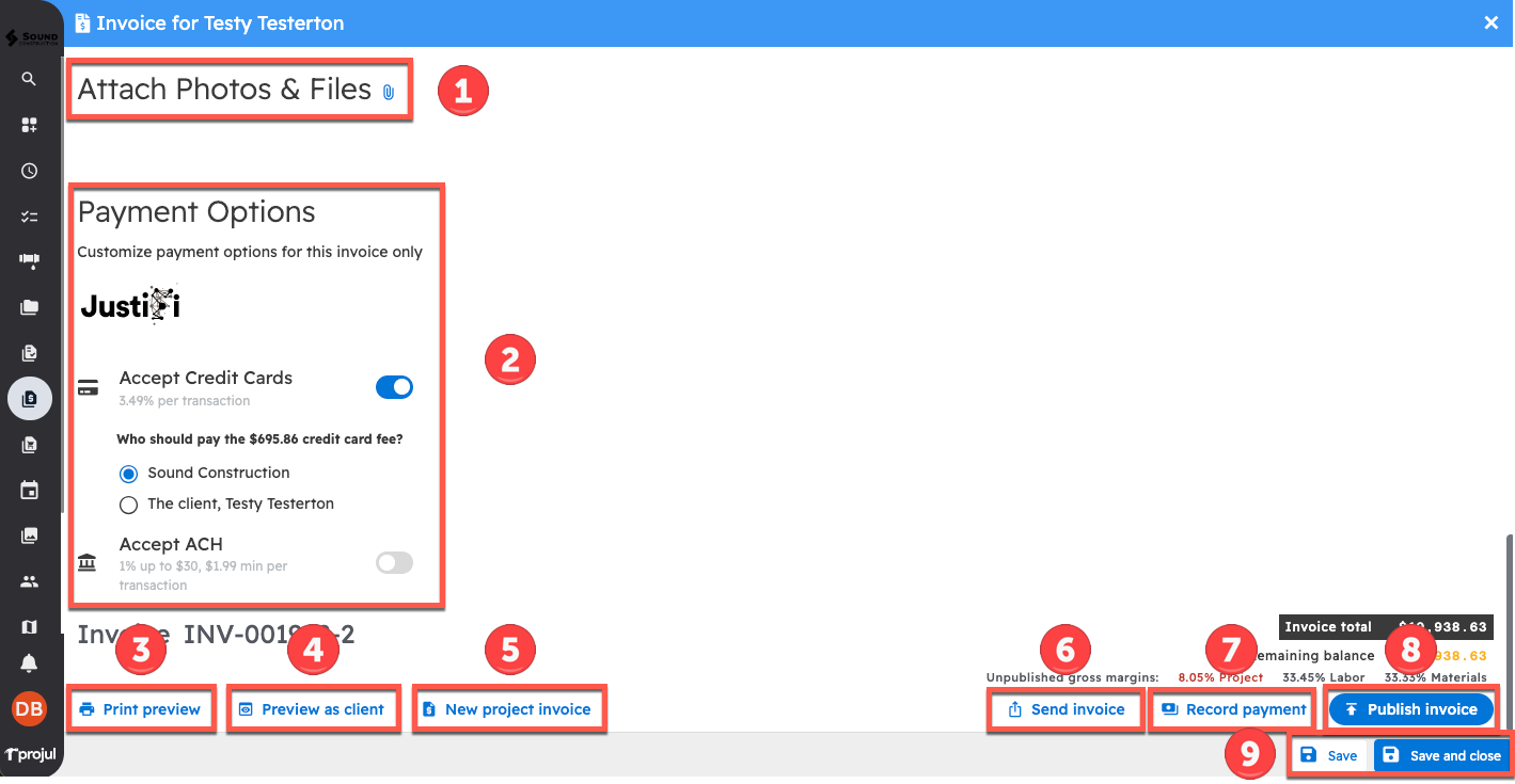 Projul’s invoicing system makes editing easy with its simple, intuitive interface.