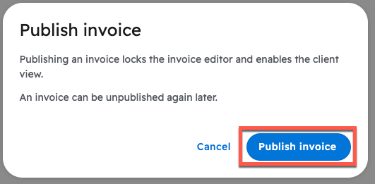 A pop-up will appear stating what happens when the invoice is published. Select "Publish invoice" to publish the invoice.
