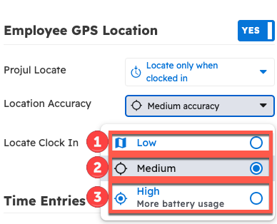 Location tracking accuracy has three options: