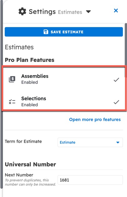 Estimates have two features available only through the pro plan: