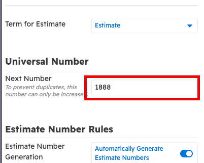 This number automatically changes as new estimates are created and new numbers are taken.