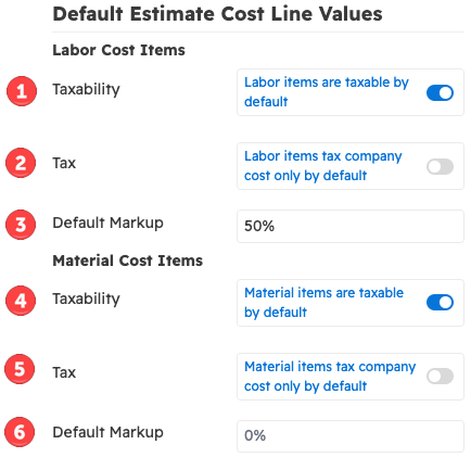 - Set default markup for labor cost items