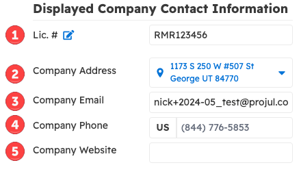 Displayed Company Contact Information