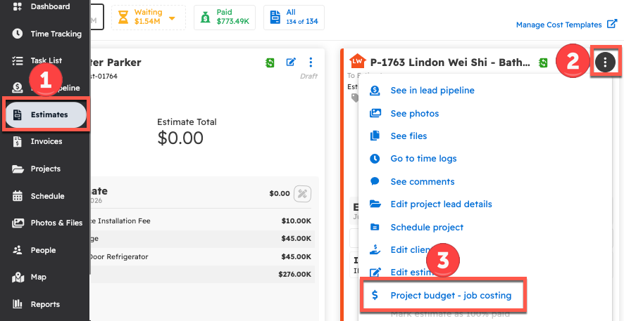 How do I access the Project Budget/Job Costing page?