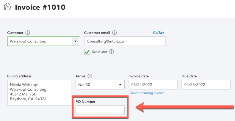 Now, when an Estimate is synced from Projul's database to QBO's, the entry in the custom field will transfer over as well.