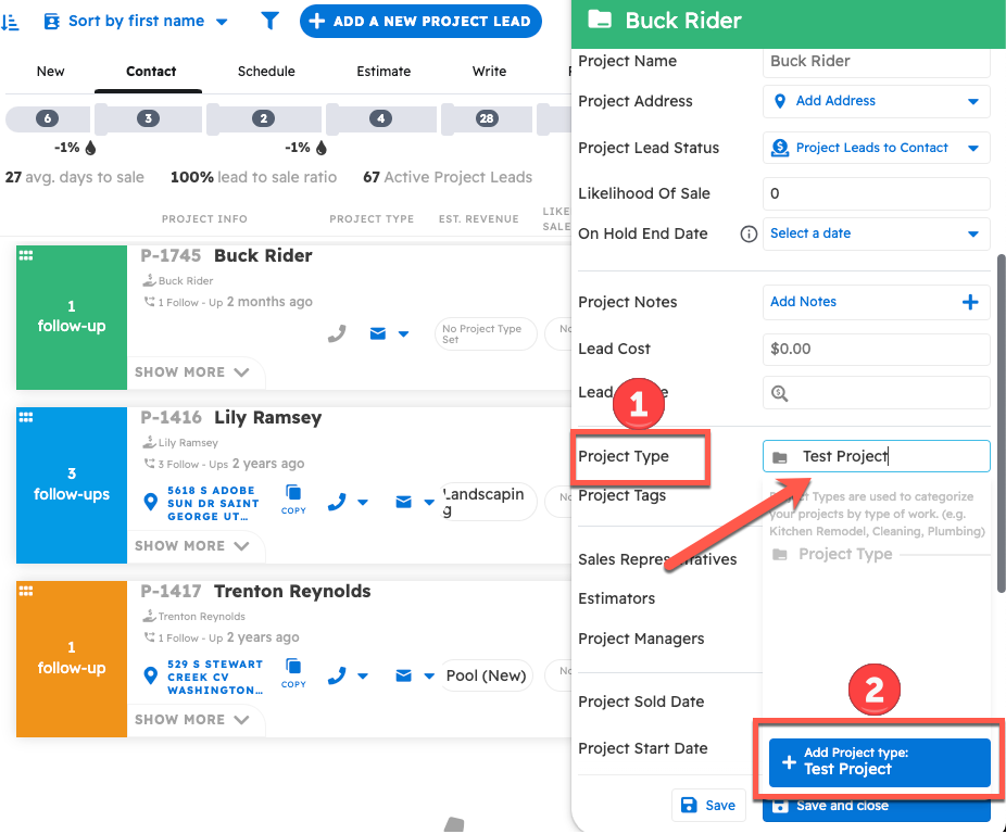 - With the name of the new Project Type entered, click "Add project type" at the bottom of the window.
