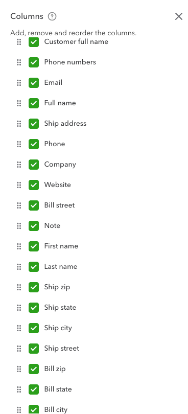 From there, go through and select all items shown in the list in the screenshot below. Once all of these items are selected, click "Run report." It MUST have these items independent for us to import it (i.e. the address has to be broken out into different columns).