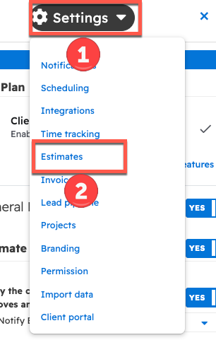 In the right sidebar, select "Estimates" from the dropdown menu.