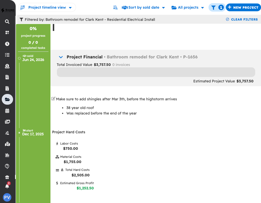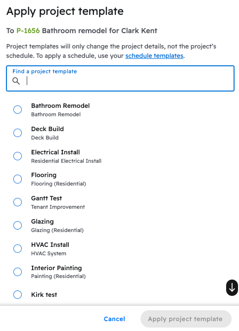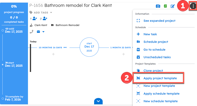 With the project template applied, all the tasks from the template will appear and show on the new project. Existing tasks on this project will remain and will not be changed when applying the template.