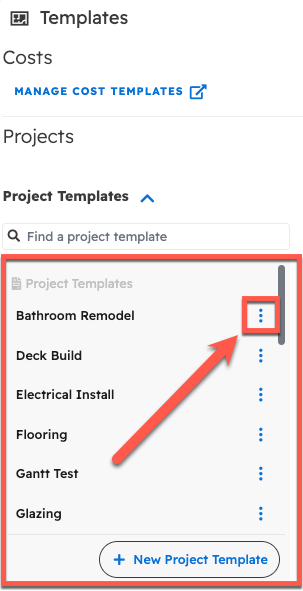 This should open up a tab showing all the project templates that you currently have. To edit an existing template, simply click on the three dot menu and click "Edit."
