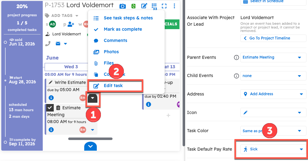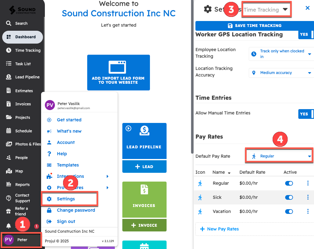 - Click "Project Default Pay Rate" at the bottom of the pop-up menu
