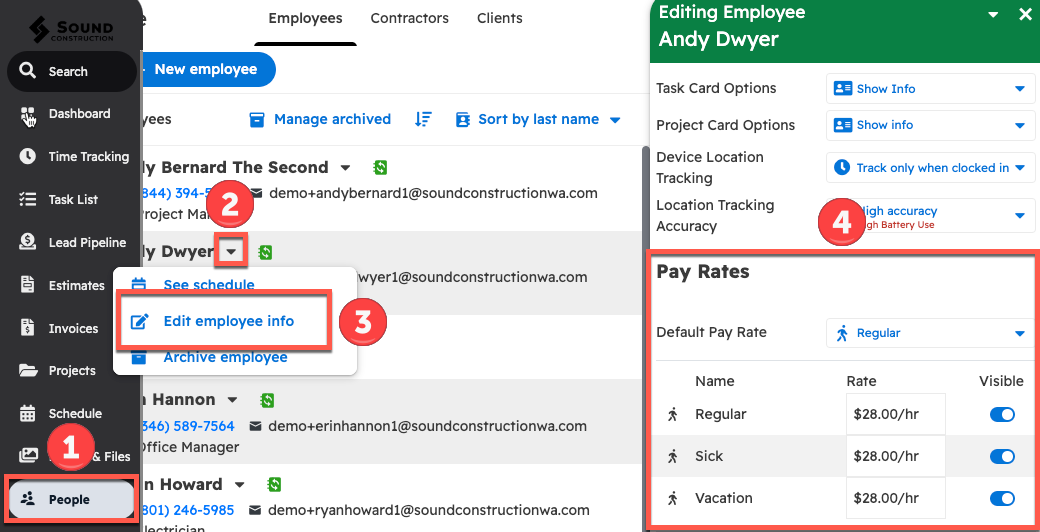 - Scroll down on the employee sidebar to the "Pay Rates" section and edit the pay rates to your satisfaction.