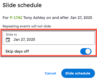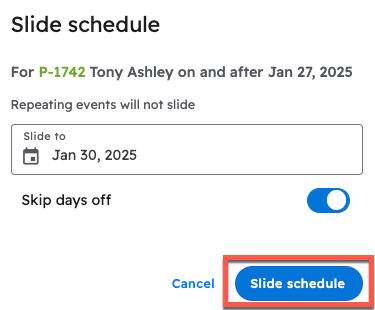 You can then confirm your changes by pressing "Slide Schedule"