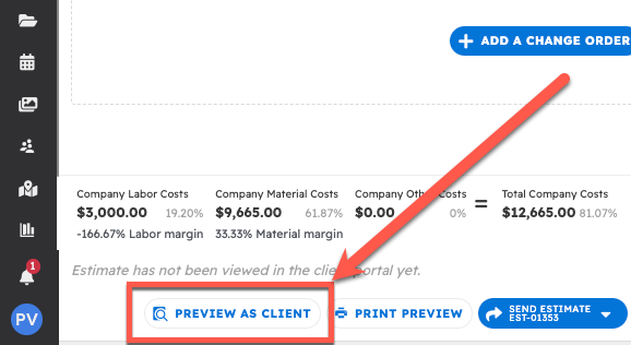 Inside the Estimate Editor, scroll down to the bottom and select "Preview as Client."