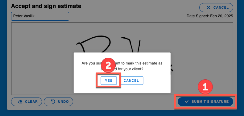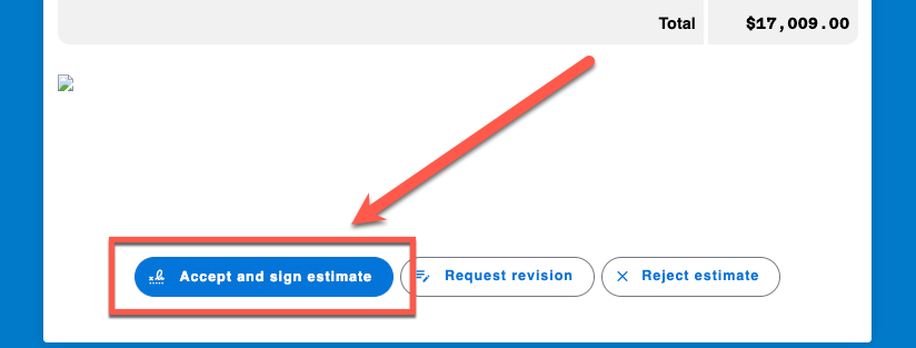 This will open a pop-up window showing the estimate as viewed by the client. Select the "Accept and Sign Estimate" option.