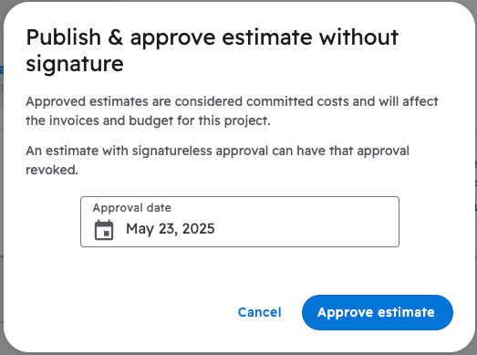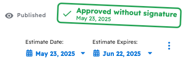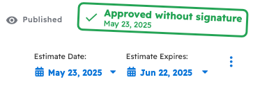 1. Click the "Approve without signature" button. Keep in mind that this will approve the estimate immediately.