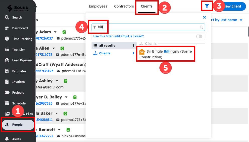 - If you have many clients, you can use the filter on this page to find the exact client you are looking for