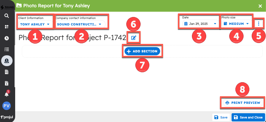 - Print Preview: Generates a .pdf preview of the photo report which can be saved locally.