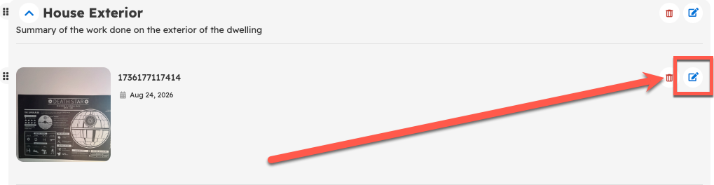 Selecting the edit icon associated with an Image allows you to name the image and add a description.